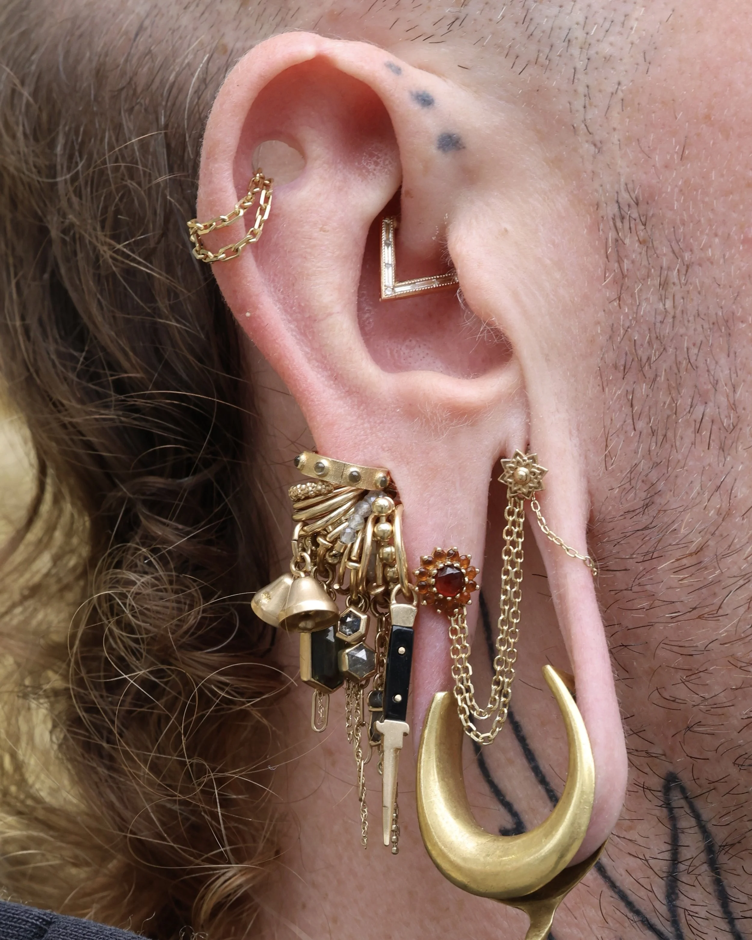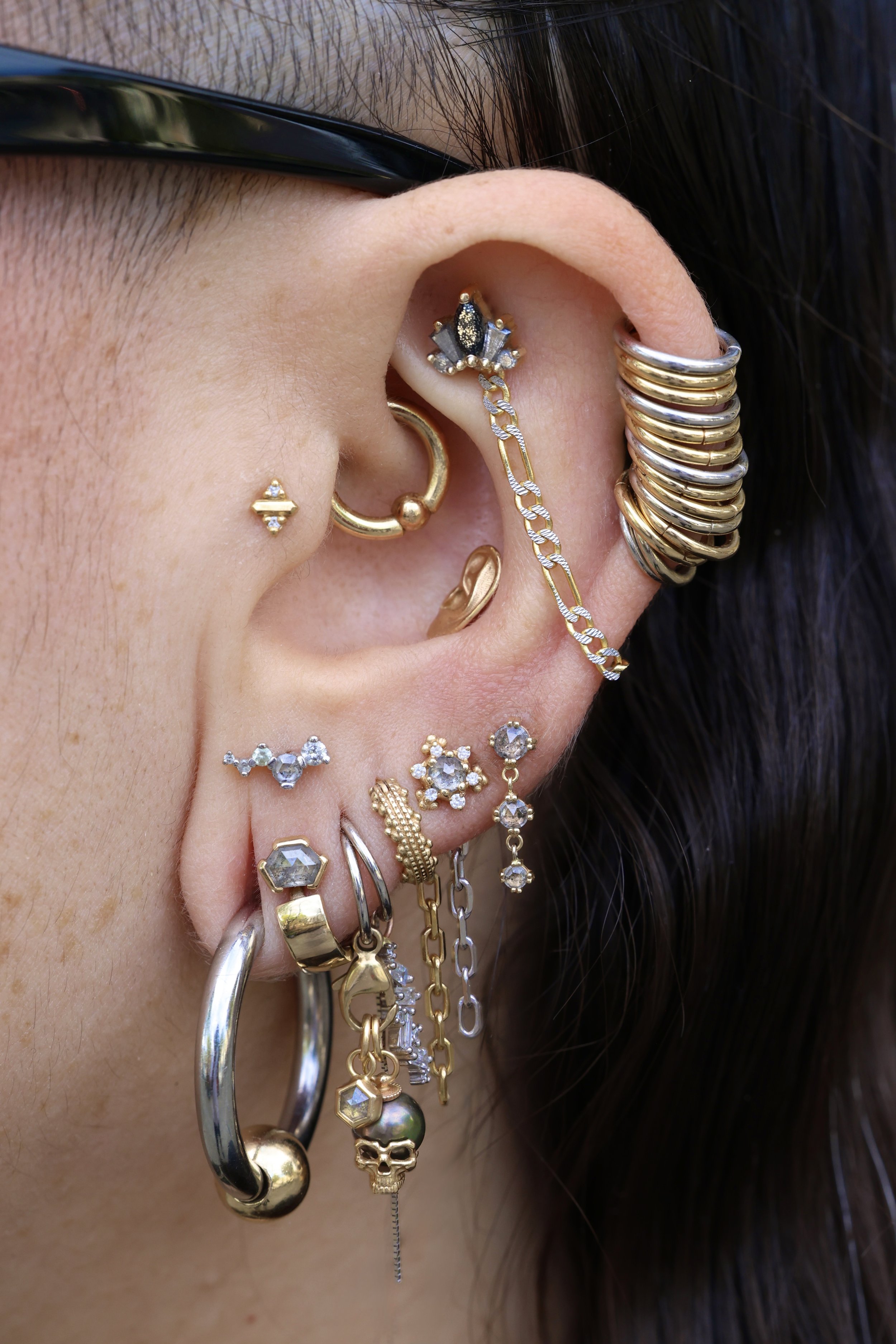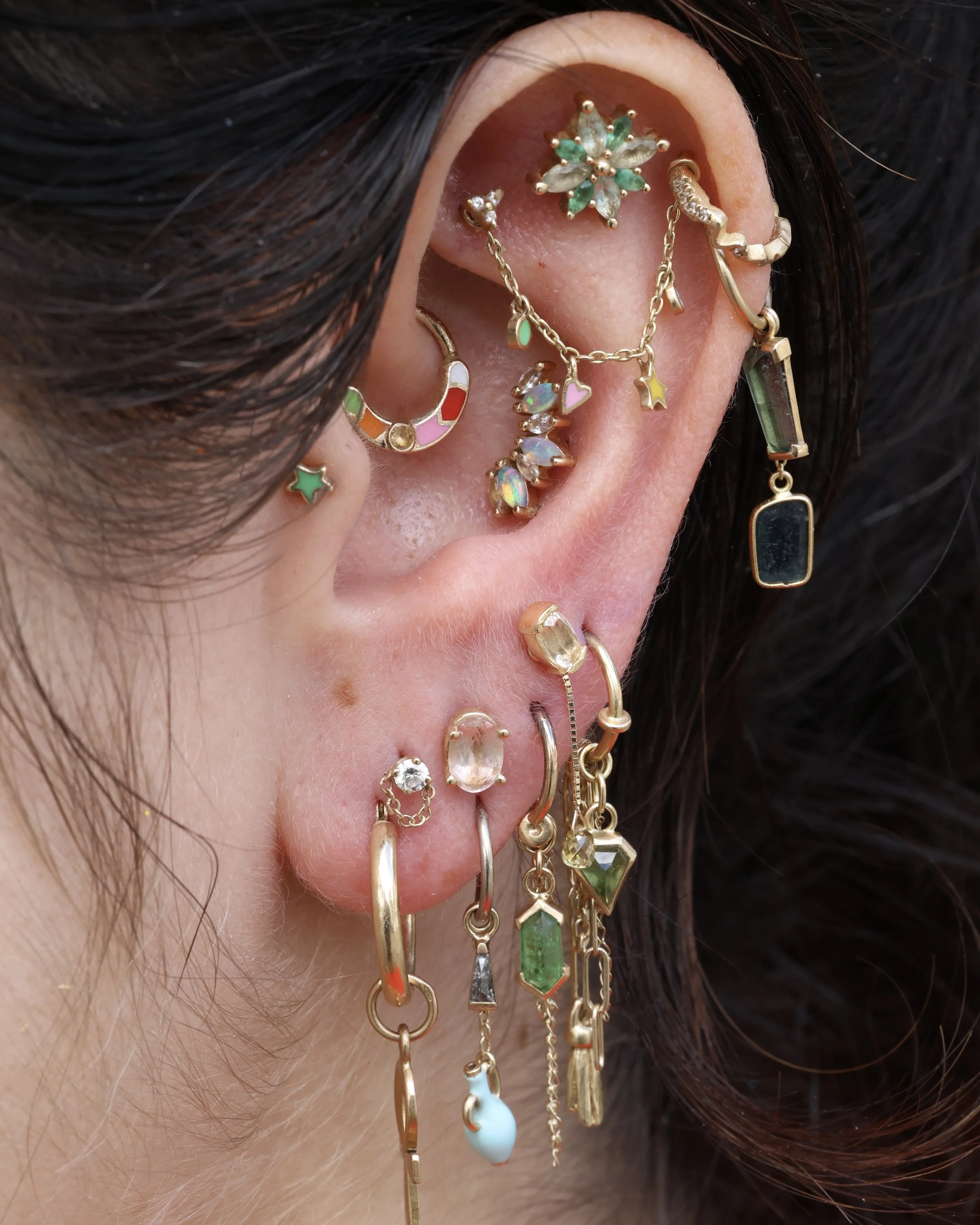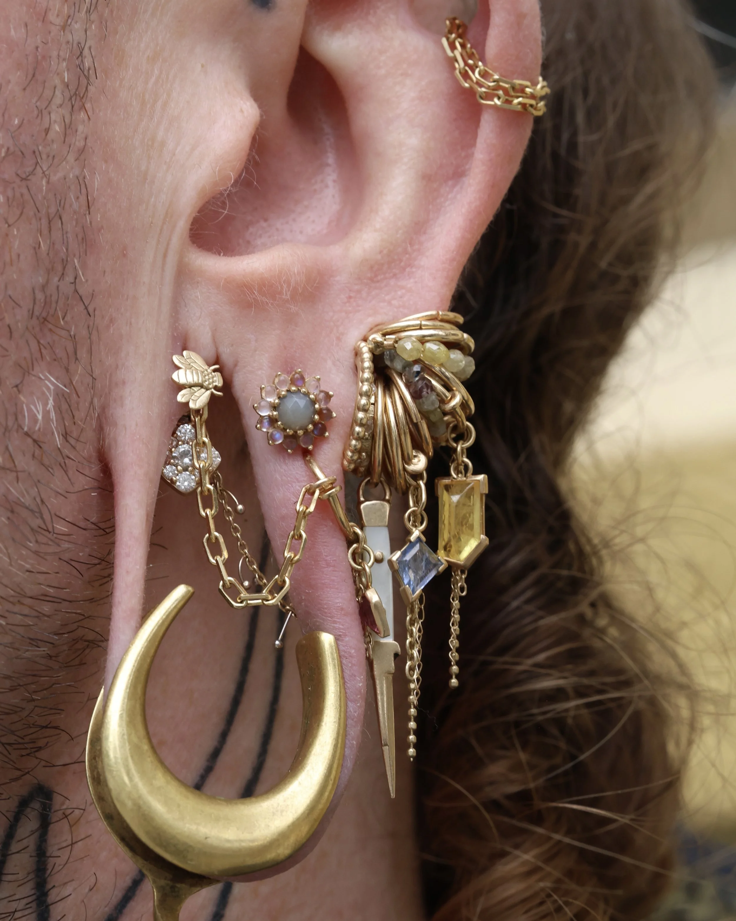 Minimal Link Hoops step 1: pick your ring! Simple Hinged Seamless Ring Diamond Telesto Seam Ring step 2: stack your charms! Cassiopeia Constellation Charm Evil Eye Double-Sided Dagger Pendant Point Pendulum Charm