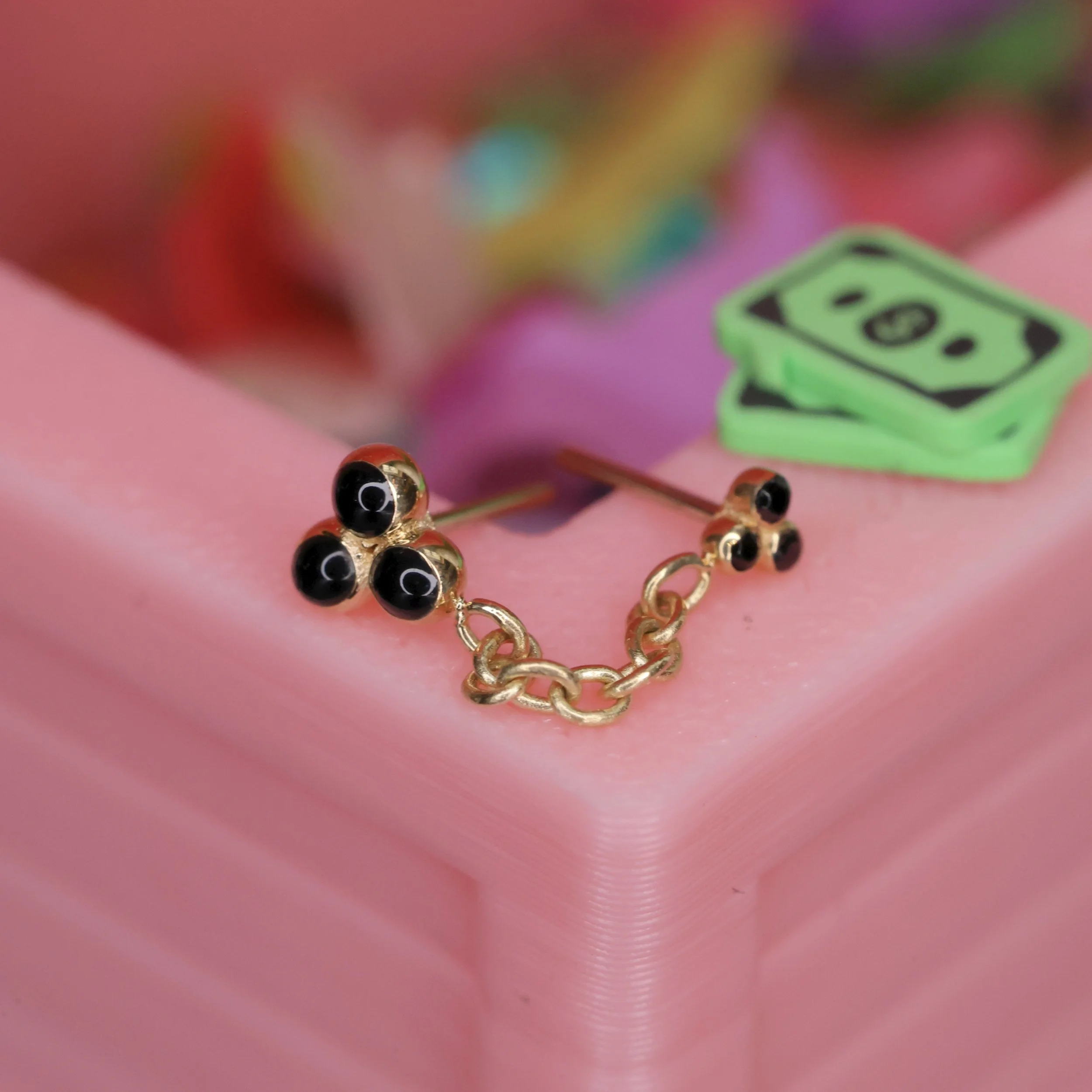 Lavender or burgundy enamel set in solid 14k yellow gold. Hand-made by Pupil Hall.